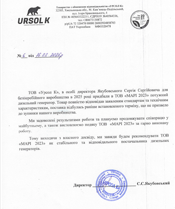Працюємо також з іншими генераторами європейського та азійського виробництва.